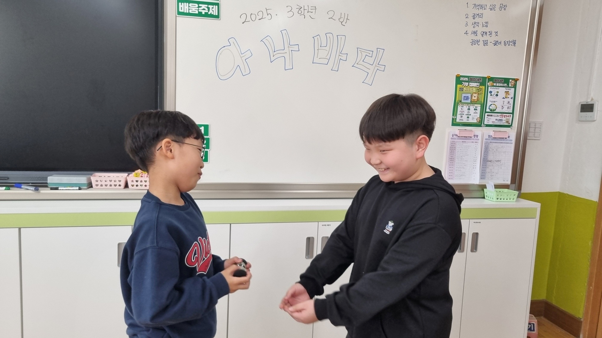 집에 더이상 필요 없는 물건을 가져와 친구에게 나눔했어요!